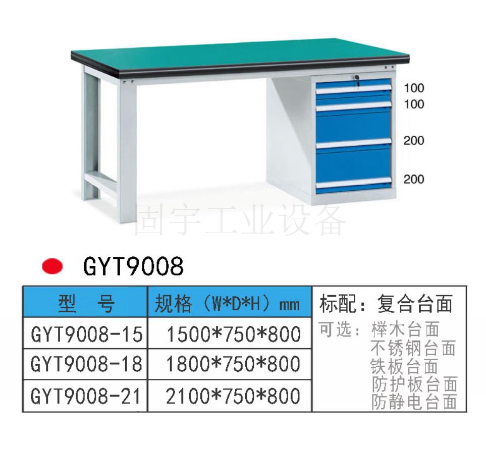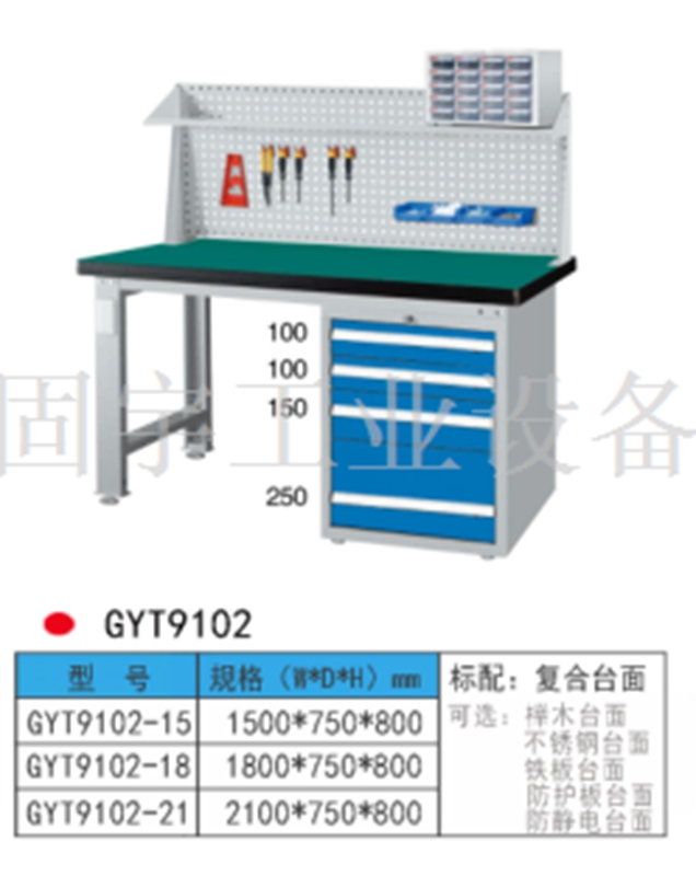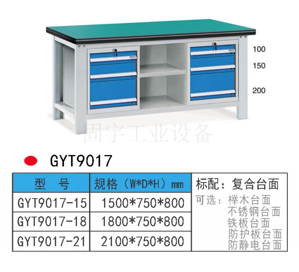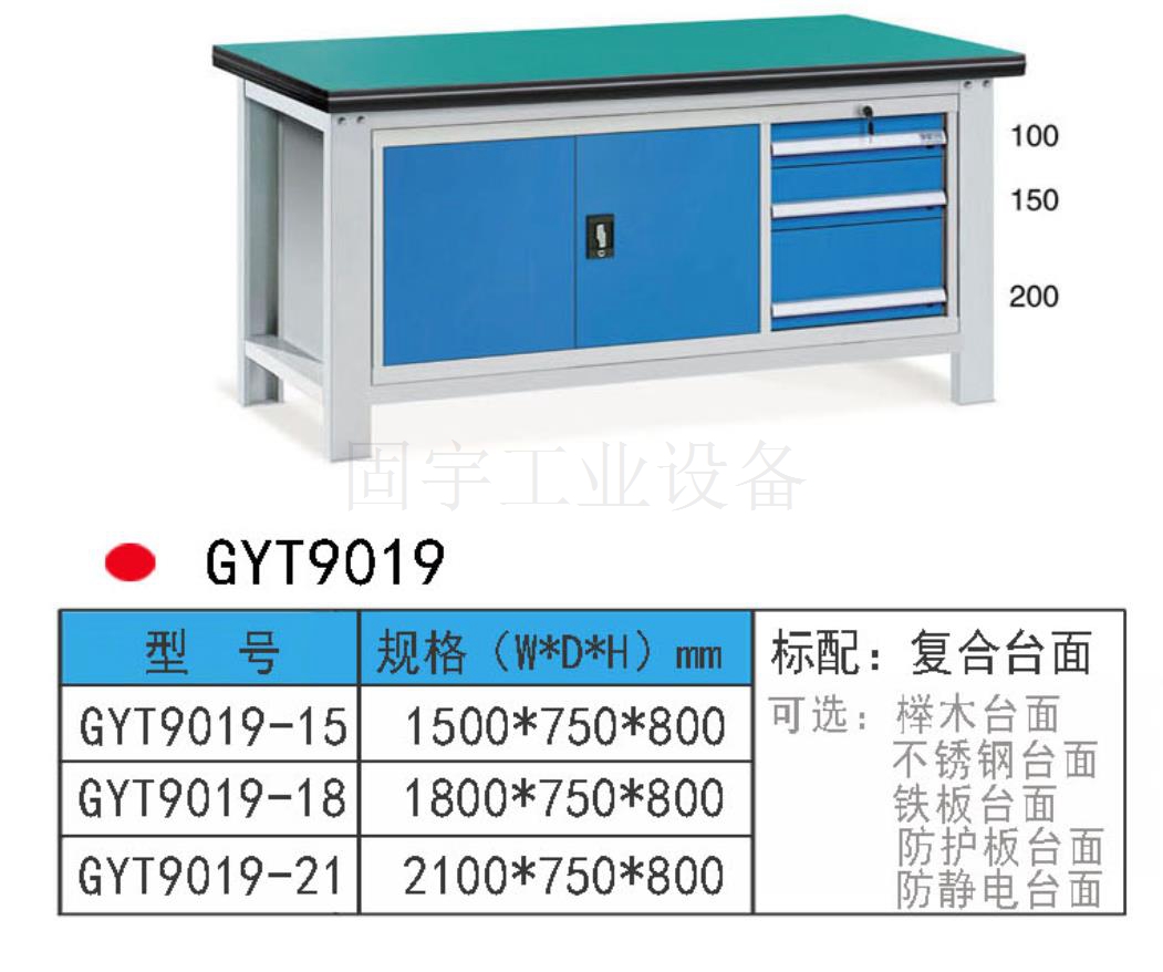 工作臺采用優質冷扎板精工制作而成,堅固的工作桌框架,牢固平穩,可使工作桌承重1000kg;多種工作桌面選擇,可配合不同使用的要求;工具吊柜(箱),側柜(箱)燈架,調節腳杯,,外形美觀;層板,抽屜質量上乘,承重大,抽屜內可根據需要任意分隔;節約空間,適用性強。 范圍 工作臺適合于模具、鉗工、檢測、維修、組裝等各種不同應用場合,具有良好的耐腐蝕性,耐臟性,抗沖擊性和承重能力強。桌面經特殊處理,具有防腐、抗沖擊力強等特點,多種桌面的選擇,可配合不同的使用要求;所配置的抽屜、柜門方便使用者存儲工具;桌角上預留電源孔,方便安裝電源插座。工作臺(桌)分為輕型(可承重300公斤),中型和重型工作臺(桌)可承重1000公斤及特制的工作臺??筛鶕枰`活地配置各種吊柜、單柜、雙柜等,可加裝掛板,電器板,燈頂板、調節腳杯,輪子,擱板等桌上部件,具有多種選擇,能夠滿足各種工位的需求。 工作臺材質采用優質冷軋鋼板,表面采用靜電噴涂處理而制成,堅固的工作桌框架,牢固平穩,可使工作桌臺面均勻承重達到1000kg。桌面有多種材質組成,適用于各行業辦公場所??膳浜瞎ぞ吖?,吊柜,掛板,單開門柜使用。抽屜、承辦承重大,性能好,抽屜里可根據需求配置分隔條 工作臺分類:根據臺面的不同分為:櫸木工作臺、鋼板合成工作臺、防靜電工作臺、高分子工作臺;根據承重的不同分為:輕型工作臺、中型工作臺、承重型工作臺;根據功能的不同分為:多功能工作臺、帶吊柜工作臺等等。 臺面優勢 復合臺面特性臺面平整度高,撓曲度為0.8mm。表面2mm厚度為高分子材料,使臺面耐酸堿、耐磨、耐油。臺面采用高壓纖維板,使臺面更具有抗沖擊性。特別的圓弧桌角,不易受撞擊損壞。高強度塑膠包邊堅固、實用、不易損壞、不易脫落。櫸木桌面特性桌板使用櫸木與防水膠經加壓制造而成。表面光滑平整,美觀不易變型,耐油、耐熱、耐酸、耐堿,適合一般工廠作業與精密模具維修,儀器置放與檢測等用途。不銹鋼包面特性桌板使用高壓合成板,表面包1-2mm砂面不銹鋼板,以達美觀耐用。耐高溫、耐磨損、耐油、使用壽命長,為多功能桌板,適合一般工廠、食品業、研究室、電子廠無塵室使用。輕型工作臺可承重300kg-500KG防火板臺面特性輕巧、美觀、耐磨、防火。層壓板臺面特性工作桌面平整,變型小,強度高,抗沖擊性好。 標準顏色 產品顏色 標準的顏色可分為6種:淺藍色(RAL5015), 電腦灰(RAL7035), 機床綠(RAL6011),深藍色(RAL5017)。